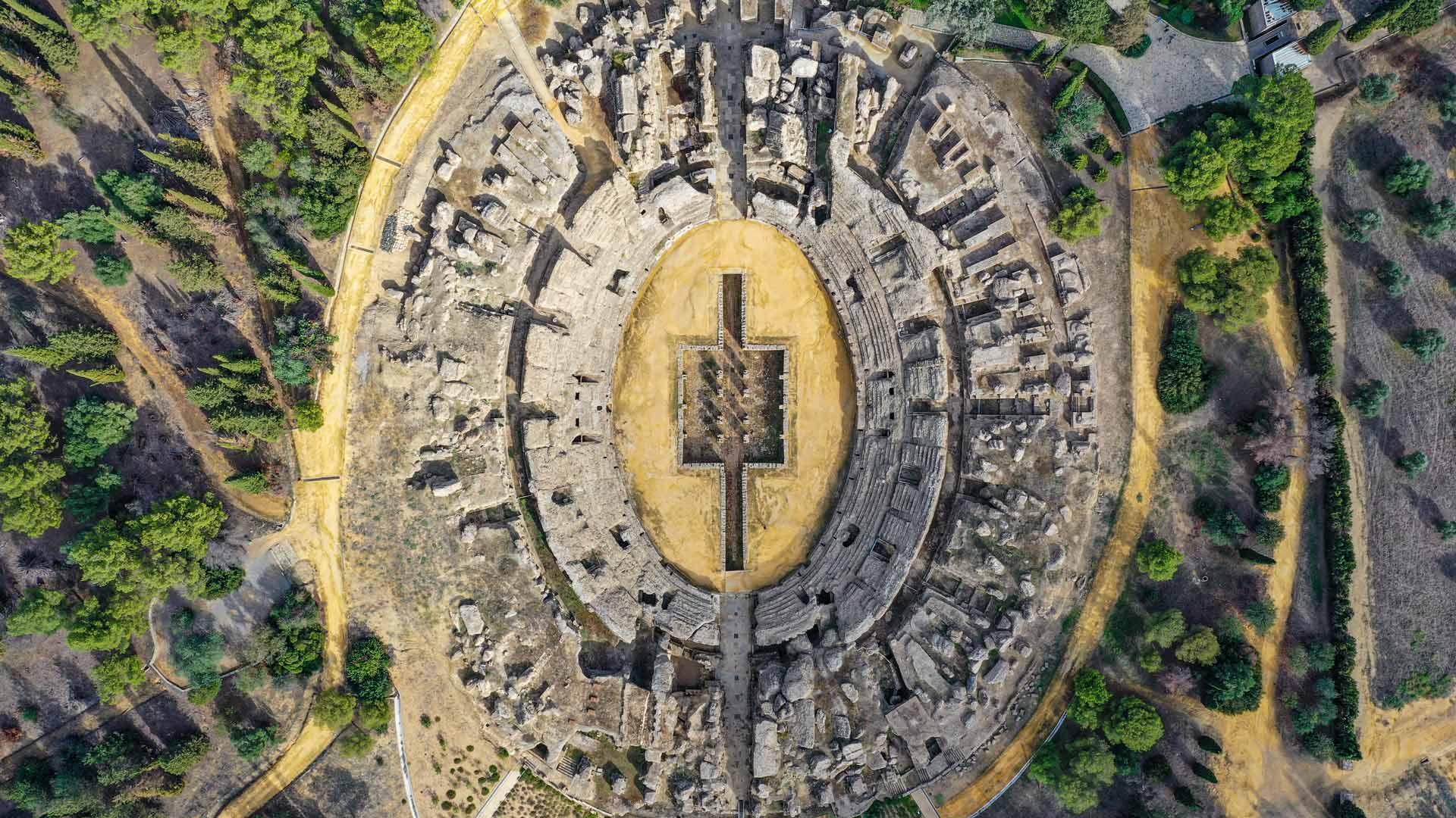 The Roman amphitheater of Italica, near Seville, 西班牙 (© Moses Palermo/Amazing Aerial Agency)